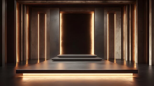 Sculpted concrete column anchoring minimalist lobby with recessed floor lighting