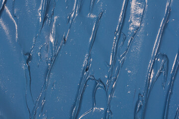 A horizontal close-up shot of thick, textured dark blue paint featuring irregular, glossy diagonal ridges across the entire frame