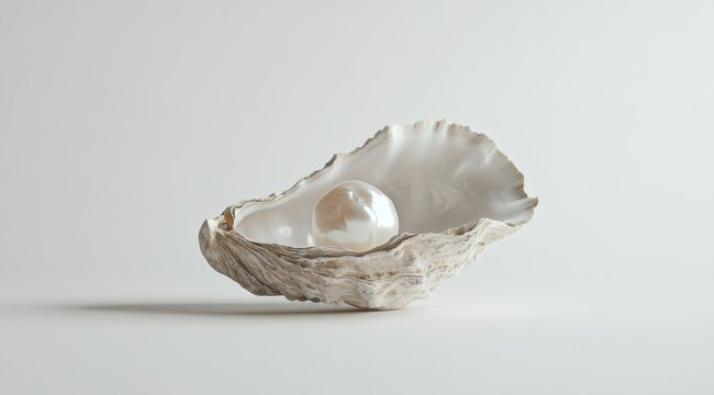 Enchanting mermaid with iridescent tail inside giant clam shell