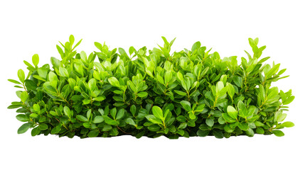 A detailed close up view of a lush green dense hedge with glossy leaves isolated against a clean white background