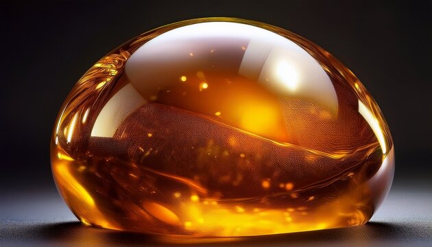 Macro crystal-clear water sphere reflecting microbubbles on dark glass with bokeh