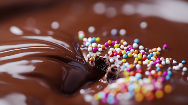 Mid-air splash of chocolate vibrant dessert topping dynamic background