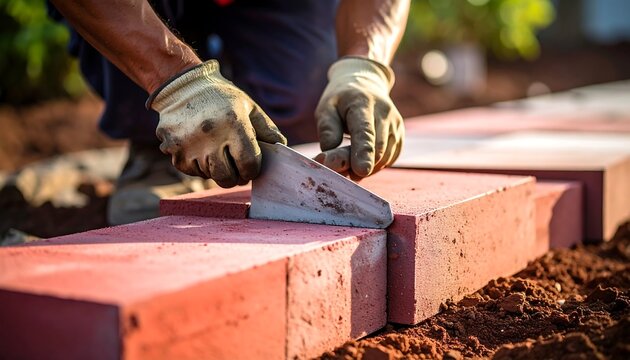 A young girl's gloved hands show beautiful purple heather in her garden, a woman planting heather in the garden