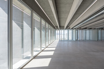 Futuristic corridor with glowing question mark