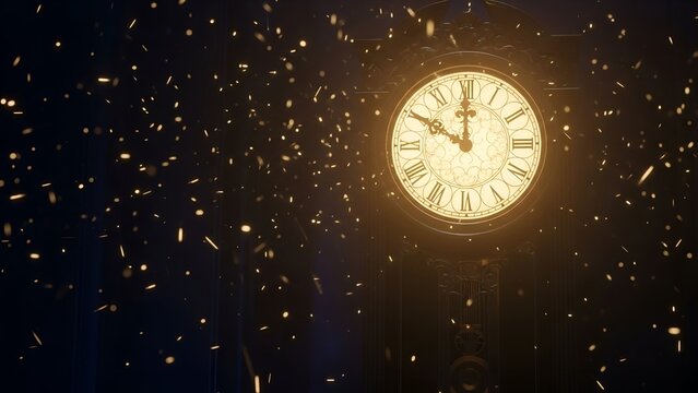 Glowing antique clock face with roman numerals against dark background