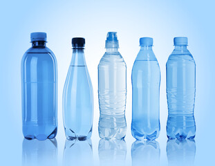 Colorful skincare bottles with droppers and pumps on a pastel background