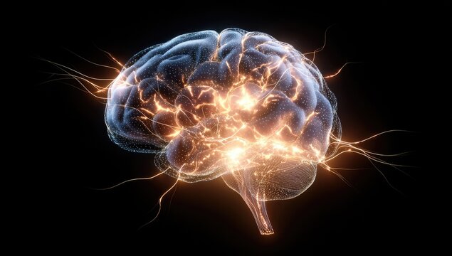 Glowing Brain Model Digital Rendering With Electrical Impulses Images