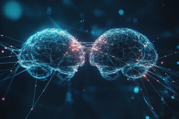 Digital art showcasing two connected brains with glowing neural networks and vibrant colors, symbolizing connectivity and digital communication