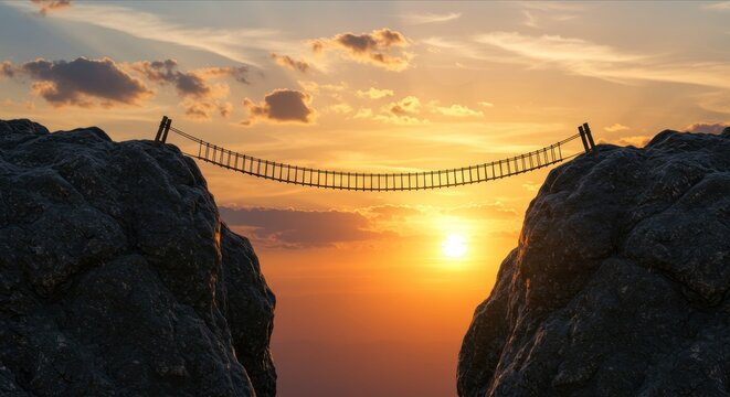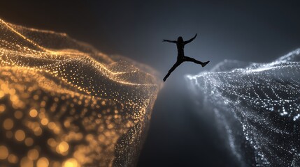 Digital Bridge Connecting Worlds: Futuristic Network & Data Flow Across a Chasm at Night