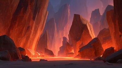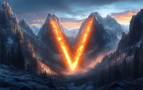 Fiery sunset illuminating a volcanic caldera rim with dramatic clouds above a glowing abyss