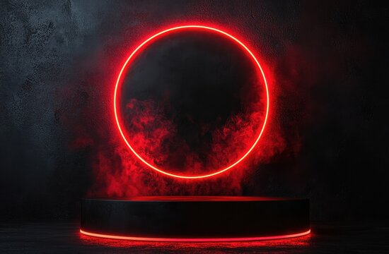 Futuristic black background with a vibrant red neon light ring creating an abstract and modern visual