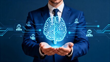 An abstract glowing circuit pattern on a human hand's palm with a red light effect. An abstract, futuristic concept background for digital technology, AI, and machine learning