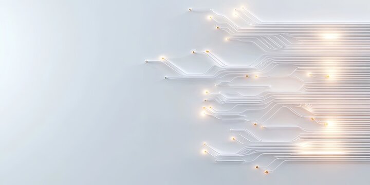 Futuristic glowing circuit traces in digital network