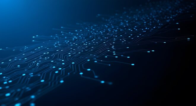 Futuristic digital circuit board with cyan glow