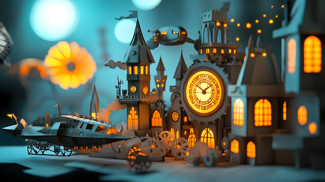 Macro shot of intricate clock gears glowing under soft cinematic light, dynamic depth emphasizing mechanical artistry
