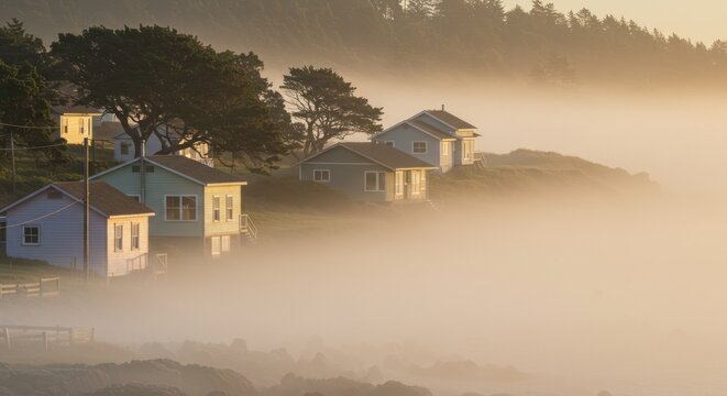 Tudor cottage overlooking chalk cliffs and natural arch on coastal cliffside