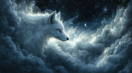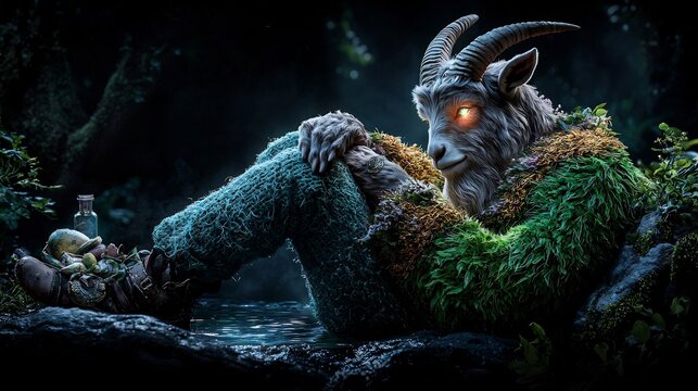 Enchanting forest deity with glowing eyes amidst a mystical woodland scene