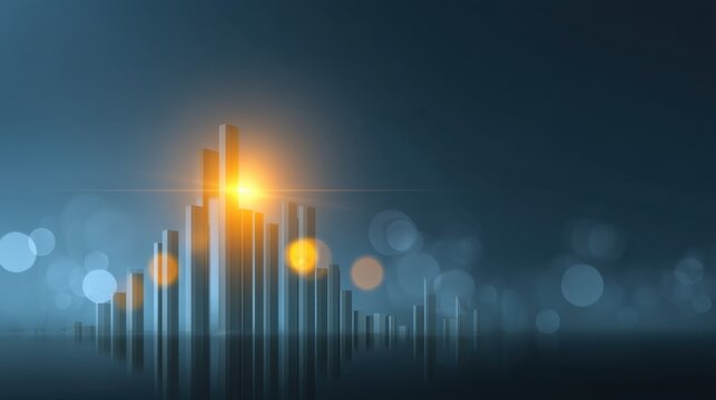 Abstract graph with vibrant bars and glowing light effect representing financial growth and data analysis in a modern digital environment
