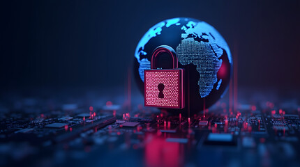 Glowing digital lock on futuristic cybersecurity interface