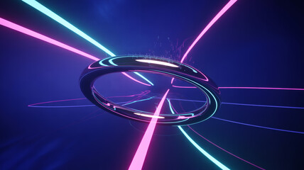 Suspended translucent torus with water droplets in abstract minimalism