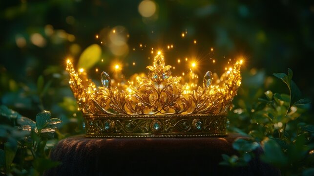A shimmering expanse of golden glitter, a cascade of glowing orbs, and a backdrop of emerald green, creating a vibrant and festive scene.