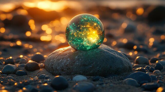 A glowing orb sits among vibrant greenery, offering a sense of tranquility and a beautiful connection to nature's peaceful surroundings, inviting contemplation and inspiration.