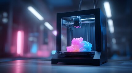 3D Printer Creates Intricate Blue Object with Advanced Technology