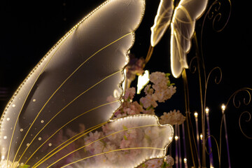 Illuminated filament couture gown with glowing led flowers and translucent wearable sculpture