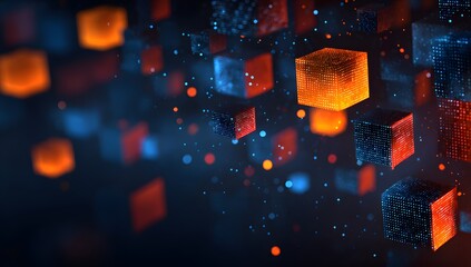 Abstract futuristic digital art with glowing geometric shapes and dark background