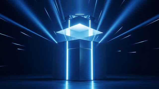 Futuristic corporate innovation concept with glowing geometric shapes for business strategy