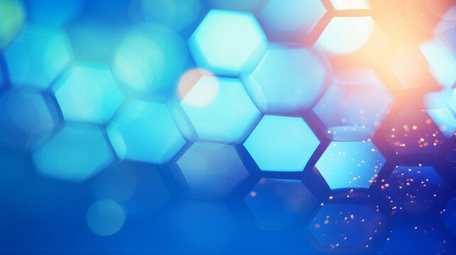 Blue hexagon shapes with glowing lines, abstract background, generative ai