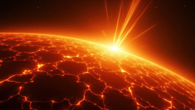 Exploding planet with lava and cosmic energy in deep space