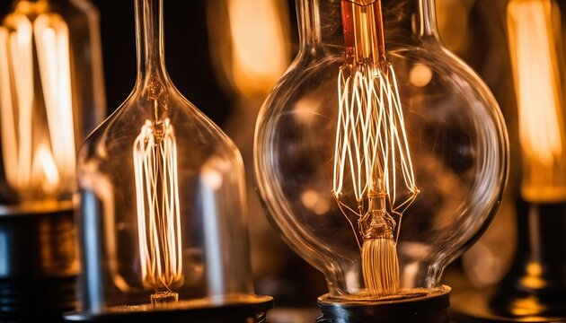 Close-up of vintage edison light bulb glowing in dark ambiance