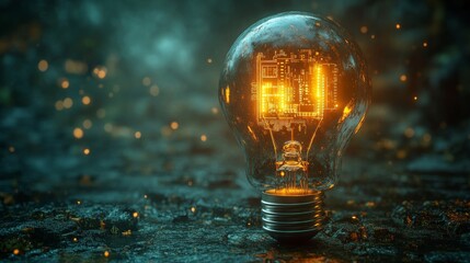 Innovative technology concept with glowing circuit inside light bulb for futuristic design