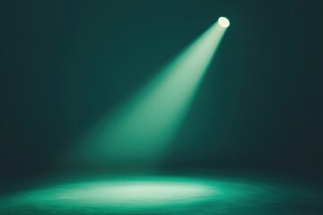 A bright focused spotlight illuminating a dark green empty space