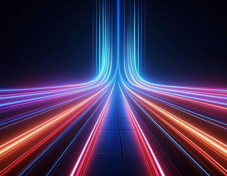 Dynamic neon light trails in futuristic tunnel