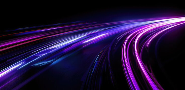 Abstract image of speed motion on the road. Neon color glowing lines background, high-speed light trails effect. Modern abstract high-speed light motion effect on black background.