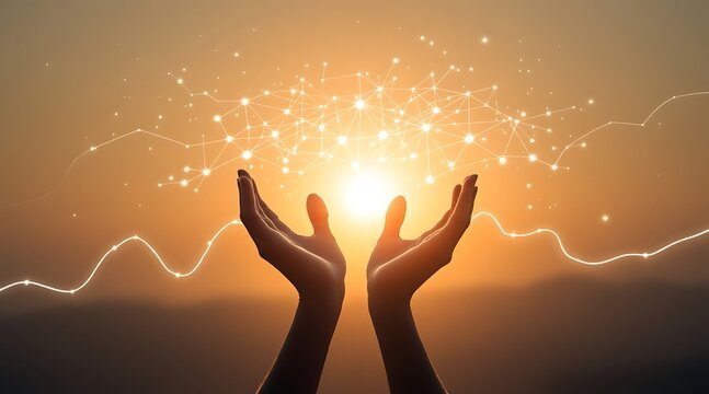 Abstract dark blue digital background with sparkling blue light particles and areas with deep depths Particles form into lines, surfaces and grids