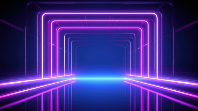 3d abstract neon background, square arch, pink blue glowing lines, futuristic gates construction