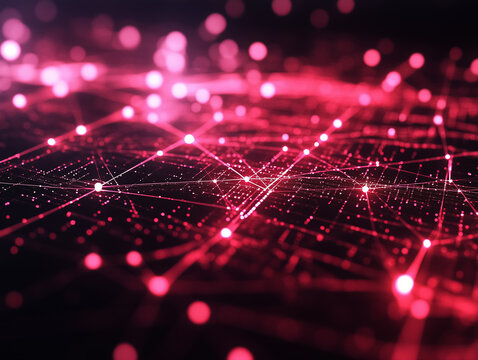An abstract digital scene featuring bright lights and technology elements, creating a futuristic aesthetic that highlights digital innovation and the tech-driven world of today.