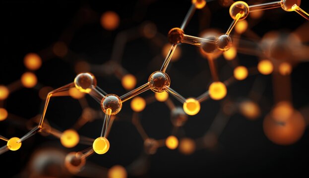 Glowing molecular structures and particles in dark scientific background