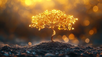 Glittering gold granules with floating code overlay creating tech luxury abstract visual