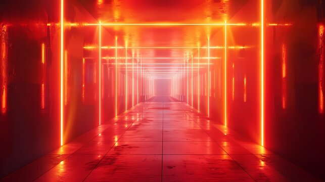Translucent glowing cubes in futuristic chamber with led grid lines