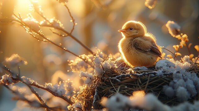 Golden eggs nestled in a decorative nest surrounded by soft glowing lights for a festive celebration