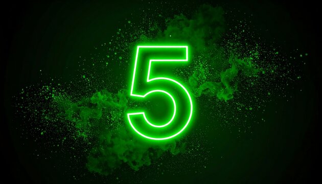 Golden number five with bright sparkler burning on top. Sparks fly around shimmering digit on dark surface. Festive celebration event for fifth anniversary, birthday, milestone party. Festive glow