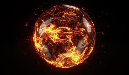 Flaming orb with energetic waves. The concept of might and passion.