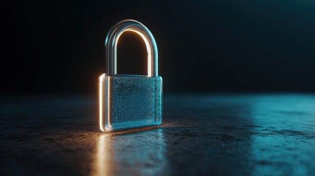 Futuristic glowing padlock representing cybersecurity
