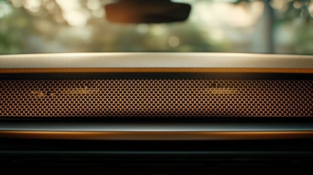 Car's textured dash detail in warm, natural light
