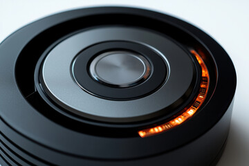 Futuristic circular interface with glowing blue and orange accents.