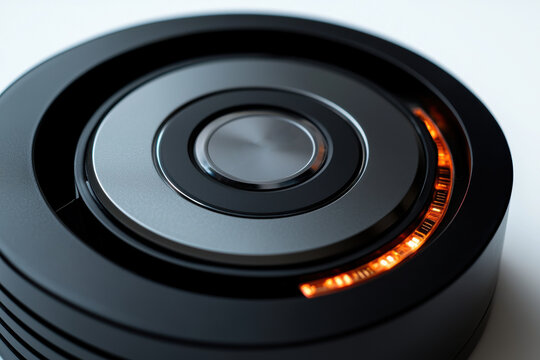 Futuristic power button, illuminated, glowing, dark background